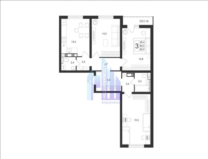 3-к.кв - 85,90 м2
