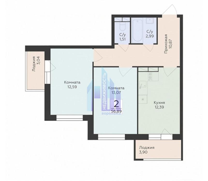2-к.кв - 56,89 м2